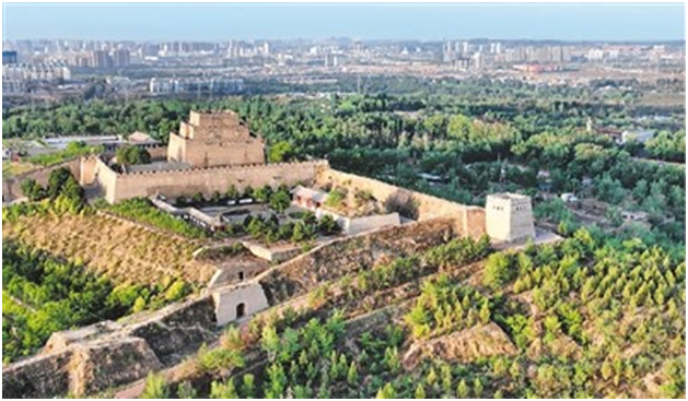 陜西省榆林市榆陽區(qū)城北的鎮(zhèn)北臺(tái)被綠樹環(huán)繞。目前,榆陽區(qū)林木保存面積482.2萬畝,每年可實(shí)現(xiàn)碳減排約70萬噸,實(shí)現(xiàn)了經(jīng)濟(jì)效益和生態(tài)效益的雙贏。