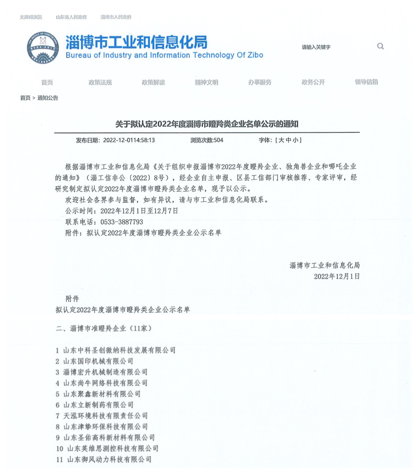 我司津摯環保被評為淄博市準瞪羚類企業