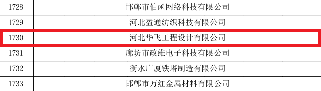 根據(jù)《高新技術(shù)企業(yè)認定管理辦法》,河北省工業(yè)和信息化廳等多部門聯(lián)合公布了一批高新技術(shù)企業(yè)認定名單,我司河北華飛工程設(shè)計有限公司(以下簡稱“華飛工程”)憑借雄厚的研發(fā)實力、持續(xù)的創(chuàng)新能力、優(yōu)秀的科研技術(shù)成果,成功入選國家高新技術(shù)企業(yè)名單,正式邁入這一含金量極高的企業(yè)行列,榮譽證書于近日正式授予我司。